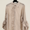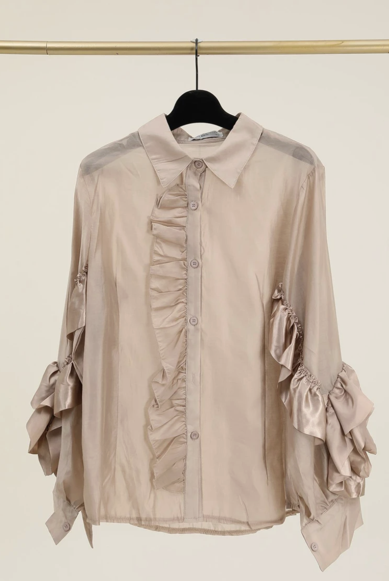 Blusa Beige de Seda con volante en Manga y Flor de rosa en Relivie 3D