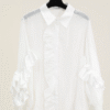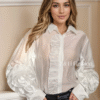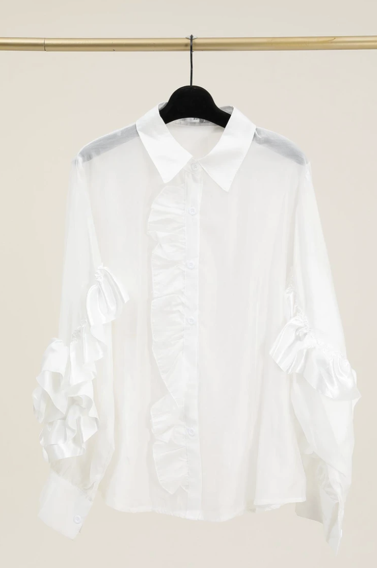 Blusa Blanca de Seda con volante en Manga y Flor de rosa en Relivie 3D