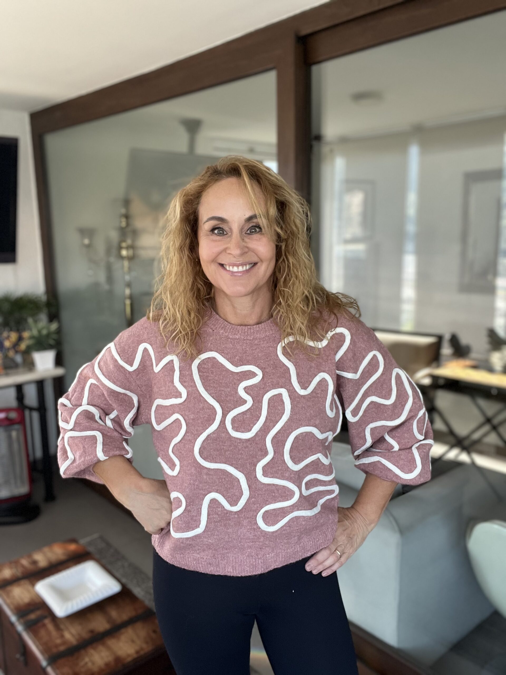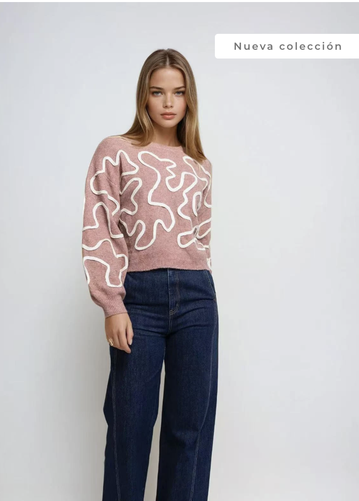 Sweater Rosa con detalles en color crudo