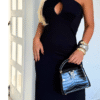 Vestido Largo Negro cuello cruzado